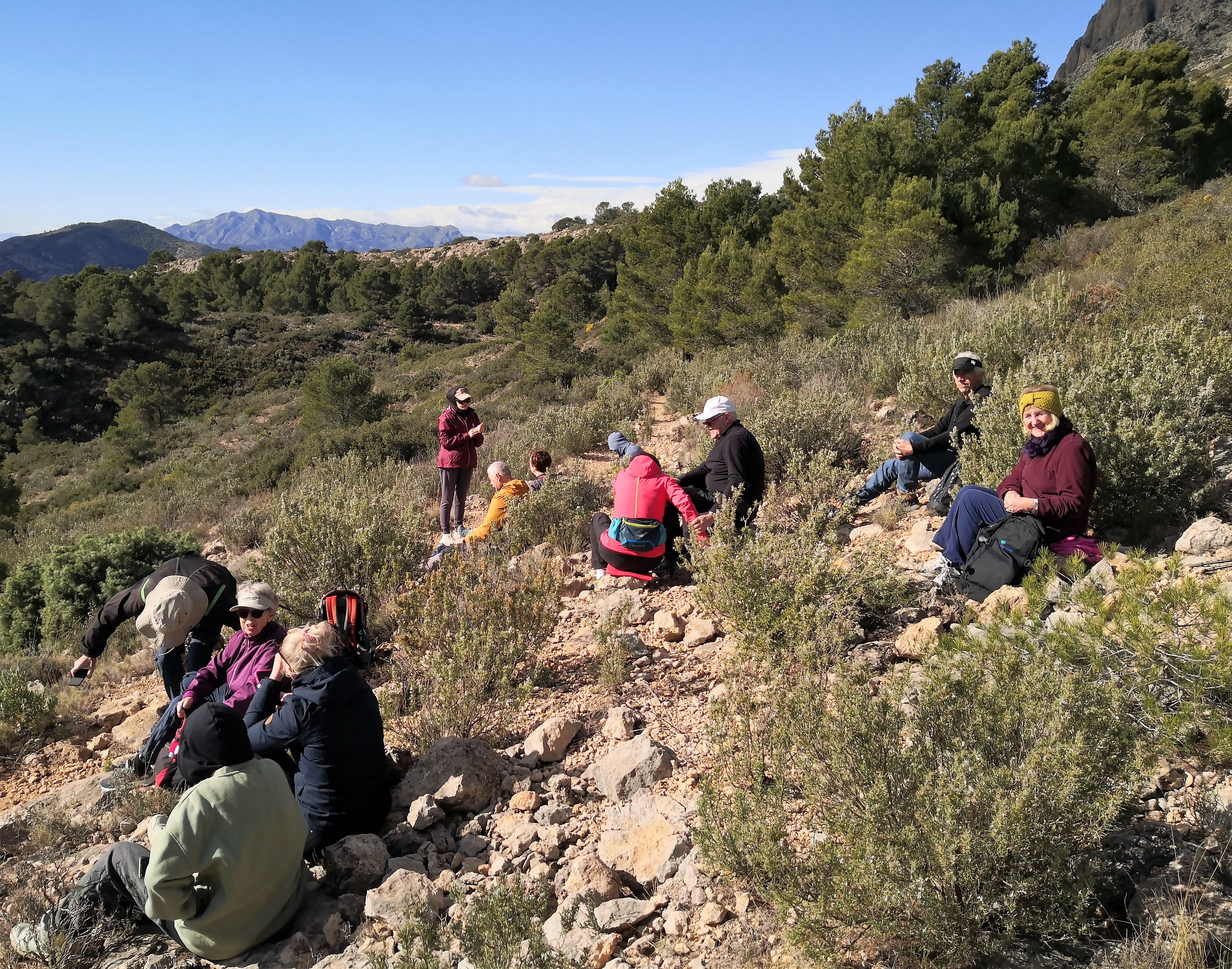 Ca 7 km rundtur fra parkeringsplassen i Tarbena. En del bakker med høydeforskjell på litt over 100m, fine stier og grusveier. De som ønsker, kan legge inn en ekstra tur til utsiktspunkt midtveis i turen, de andre tar spisepause.