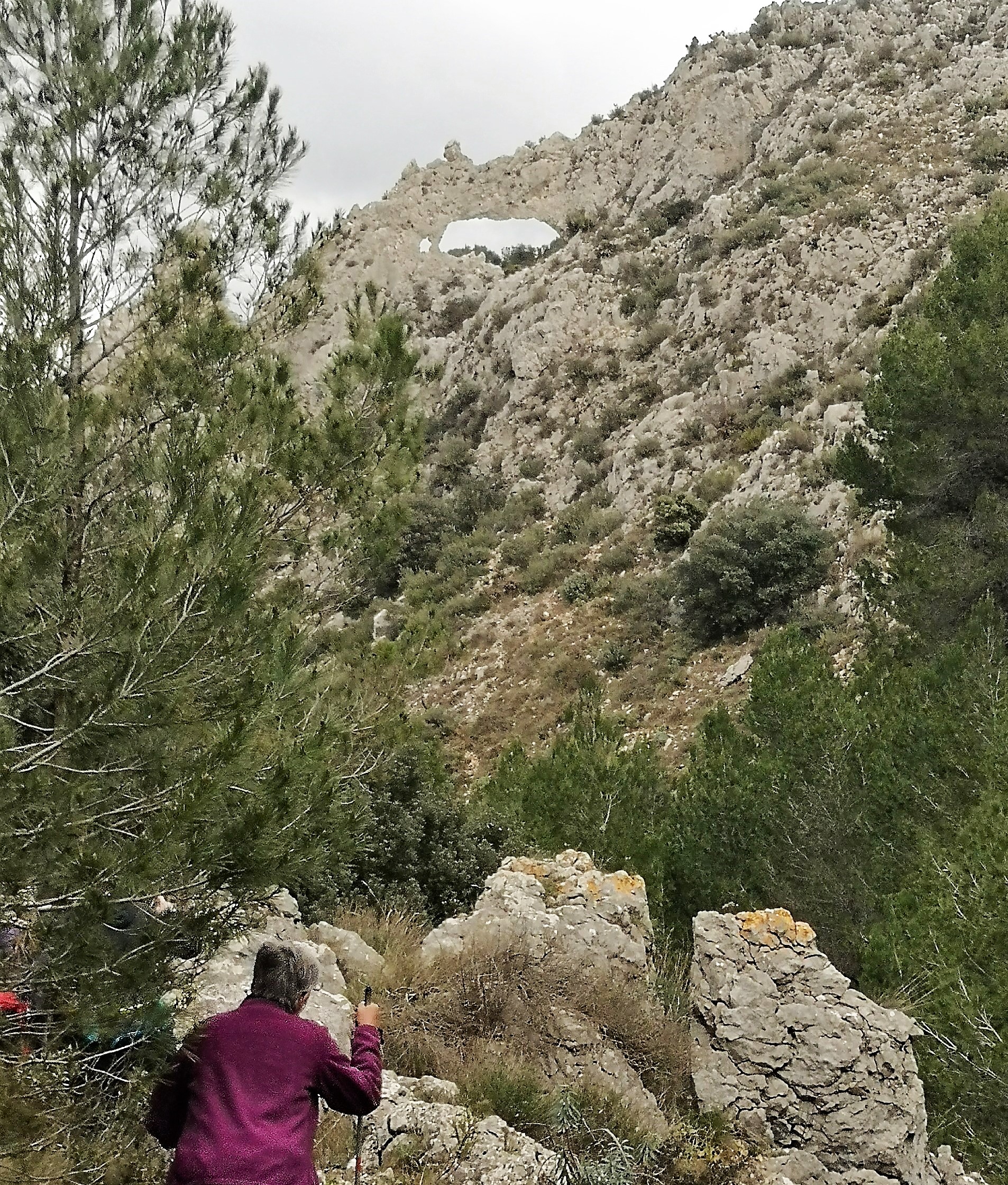Vi kjører 7 km forbi Tarbena mot Castell de Castelles. Der går vi en runde på ca 6 km (4,5 hvis man ikke går til klippevinduene). Lett tur uten særlig stigning, på greie grusveier. Litt stigning og smal sti mot klippevinduene, ellers en tur i lett terreng.