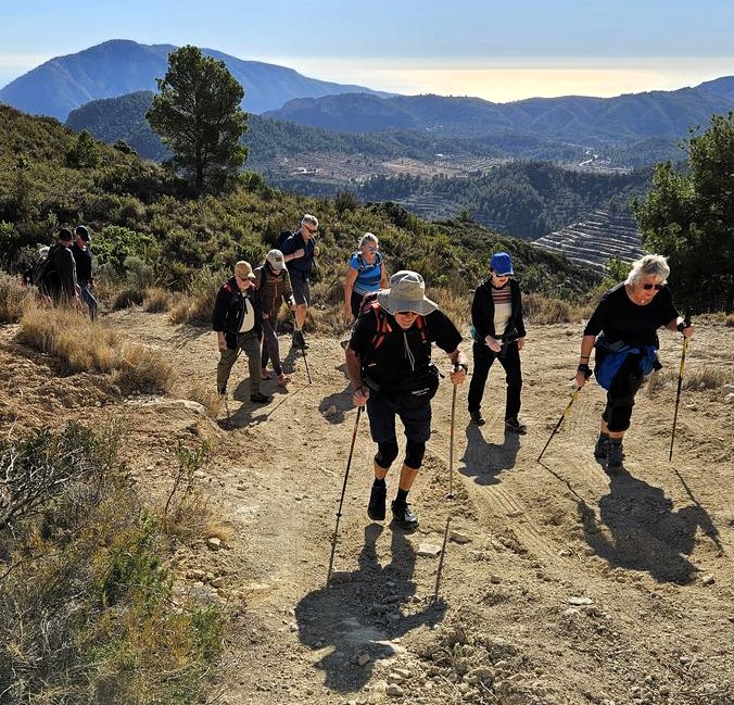 De som ønsker, kan gå korttur, de går da frem og tilbake på grusveien (ca 5,8 km totalt), mens langturgruppen går helt opp til utsiktspunkt på ryggen av Sierra Bernia.